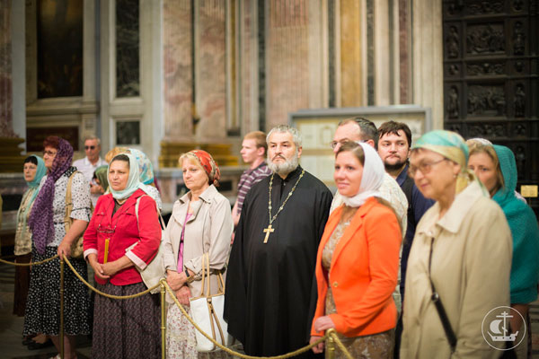- 12 июня мы присутствовали на торжественной Божественной литургии в Исаакиевском соборе по случаю престольного праздника, которую совершил ректор Санкт-Петербургской православной духовной академии архиепископ Амвросий, и причастились.